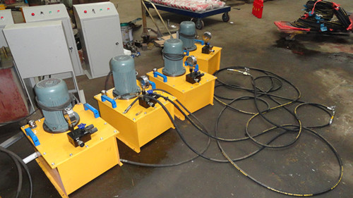 我公司生產(chǎn)的同步千斤頂質(zhì)量上乘,設(shè)計有安全保壓裝置,內(nèi)置卸壓閥防止過載,保護千斤頂以利于安全操作。并設(shè)計四組截止閥,可隨時控制千斤頂同步升與降。該裝置的連接采用的是高壓膠管和螺紋接頭連接,具有使用安全便捷的優(yōu)點,并克服傳統(tǒng)快速接頭漏油缺點,主要用于電力、建筑、機械制造、礦山、鐵路橋梁、造船等多種行業(yè)的設(shè)備安裝起頂拆卸作業(yè)?,F(xiàn)已得到廣大客戶的認可,并與其成立友好合作關(guān)系,下圖就是我公司給揚州某公司定制的同步千斤頂,已經(jīng)全部生產(chǎn)完畢,在工程師的指導(dǎo)下,調(diào)試合格,現(xiàn)已包裝完畢,準備發(fā)貨。